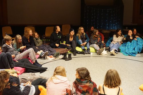 Nachdem Freitag alle ankamen und es einen ersten Einstieg ins Thema gab, klang der Tag mit Stockbrot am Lagerfeuer gemütlich aus. Samstag waren dann die Workshops dran. Wir hatten eine vielfältige Auswahl zu den Schwerpunkten Mobilität, Wohnen und Zusammenleben sowie praktische Workshops zum Ausprobieren und aktiv werden, wie selbstgemachte Körperpflegeprodukte. Es gab auch wieder eine Tauschecke, die fleißig genutzt wurde. Wer sich mal eine Pause gönnen wollte, konnte mitgebrachte Shirts oder auch Jutebeutel mit Schablonen oder Siebdruck verschönern oder eigene Buttons machen. Ein interaktiver Einkaufsladen war auch mit am Start, hier konnte man den eigenen ökologischen Fußabdruck errechnen. Auch die Blackbox hat schöne Resultate hervorgebracht und einige witzige Clips wurden gedreht – das kannst du bestimmt demnächst auch hier sehen :) Am Nachmittag gab es im Rahmen eines Austauschprogramms von JANUN Hannover Besuch aus dem kurdischen Teil der Türkei. Die Gruppe von etwa 10 Personen hat den Workshop „Lindy hop“ bereichert und uns einen traditionellen Tanz ihrer Heimat beigebracht.