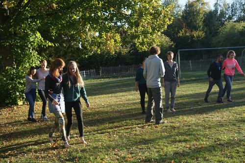 Die Feedback- und Abschlussrunde fand draußen auf dem Sonnenhof statt, wo uns einige Sonnenstrahlen erreicht haben. Wir hatten generell schönstes Wetter und haben viel nach draußen verlagert.