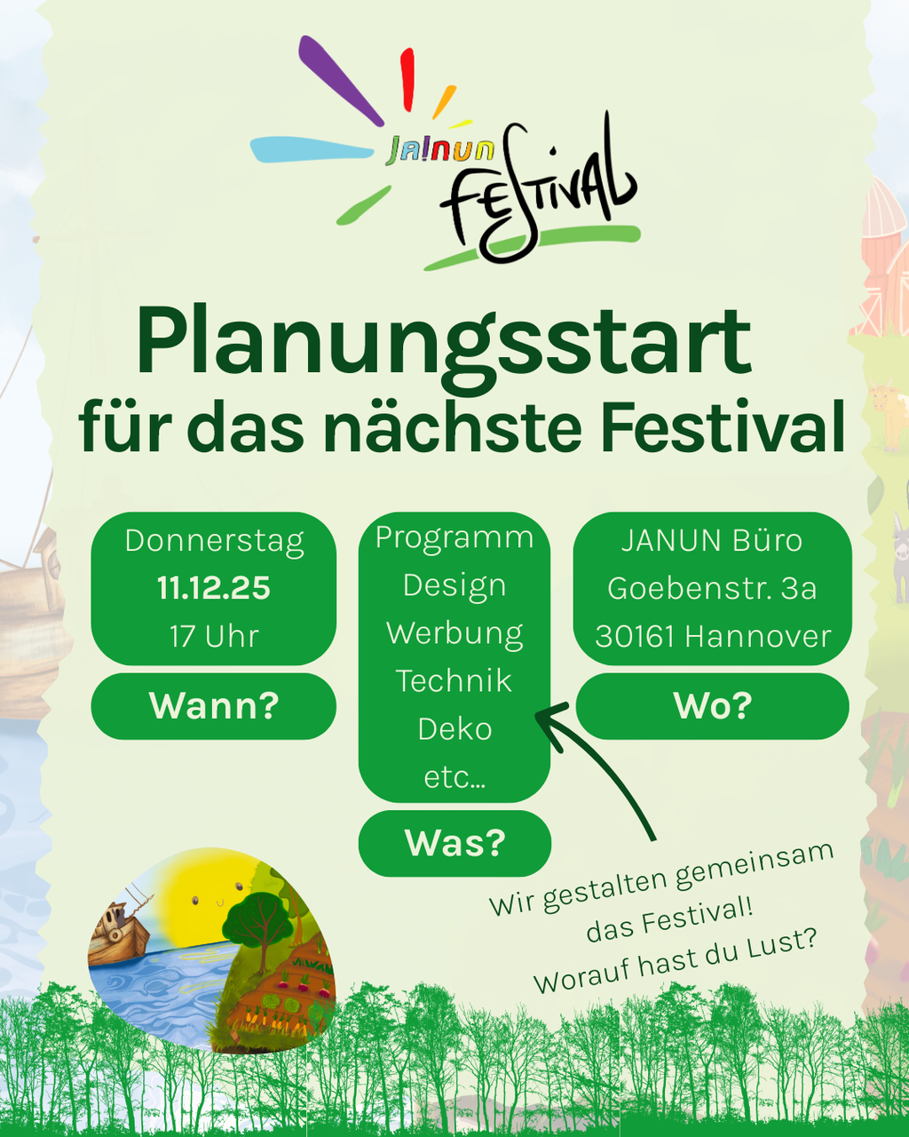 Komm' zum ersten Planungstreffen für das JANUN-Festival 2026. Wir wollen gemeinsam eine Vision vom Festival erschaffen und die ersten Planungsschritte gehen.