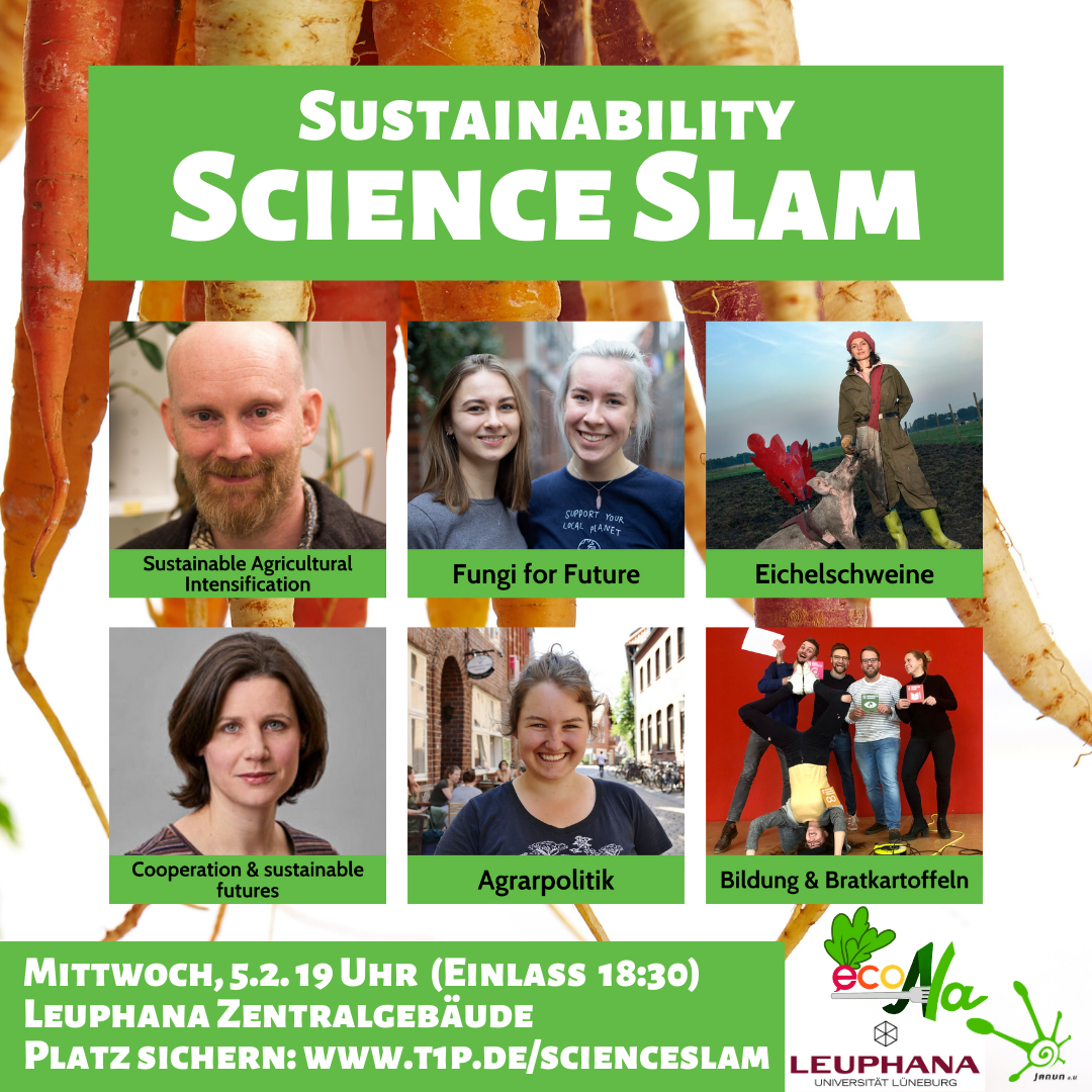 At least we* are going to do this on 5th of February at 19 o'clock at the Forum of the Leuphana Central Building in Lüneburg. Come around and gain new insights into your food and sustainable food systems! Different scientists from Lüneburg and around are going to present us their work and their funniest and most interesting knowledge in small pieces of 10 minutes each. At least one Slam will be held in English.